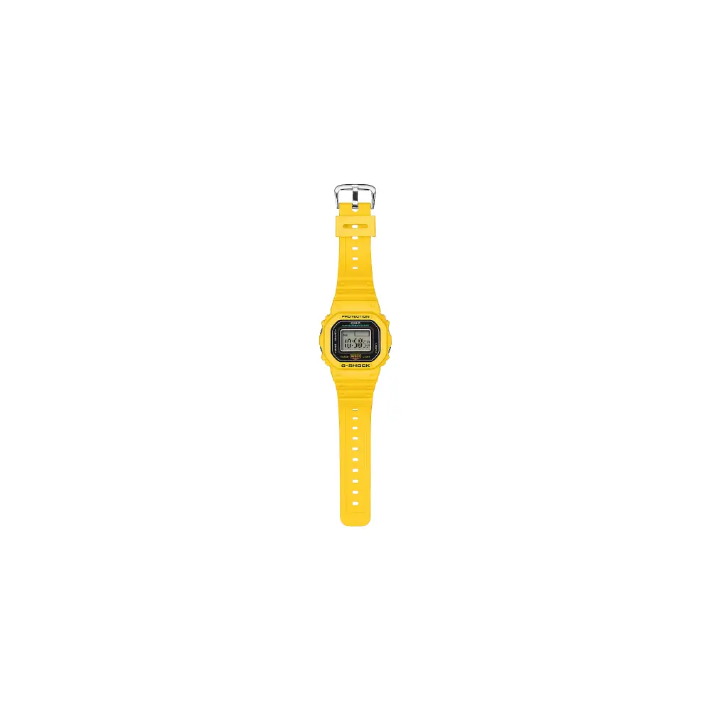 The Casio G Shock Digital DWN-5600-9JR is a groundbreaking "G-SHOCK Nano" timepiece that transforms the legendary toughness of the DW-5600 into a fully functional Ring Watch. This model features the vibrant Yellow colorway, a fan-favorite hue that pays homage to classic limited editions, making it an instantly recognizable and playful accessory. Shrunk to approximately 1/10th the size of the original wrist model, this miniature marvel does not compromise on performance. It is built with a shock-resistant structure and boasts an impressive 200-meter (20 Bar) water resistance rating, ensuring it is as durable as it is unique. The case and strap are crafted from eco-friendly Bio-based Resin, utilizing precision molding to replicate the intricate details of the full-sized watch. Powered by a replaceable battery (approx. 2-year life), the ring features a clear 6-digit LCD that displays hours, minutes, and seconds. Practical functions include Dual Time, a 1/100-second stopwatch, auto-calendar, and a unique Flashing Light that pulses at a preset time. The adjustable strap fits finger circumferences from 48mm to 82mm, and the watch comes in special collector's packaging, making it the ultimate conversation piece for G-SHOCK fans.