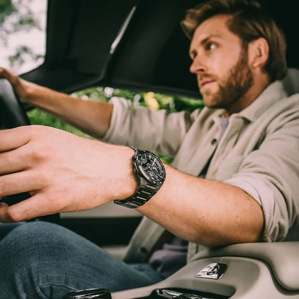 The Casio Edifice ECB-2200DC-1ADF Men's Watch Black is an excellent choice for those who love the speed and power of formula race cars. It features a digital-analog combination chronograph and a sleek, lightweight design with a carbon fiber reinforced resin case. With its unique design, this watch is both stylish and durable, making it perfect for anyone looking for a wearable timepiece that combines strength and functionality. Additionally, it includes features such as world time, a stopwatch, a countdown timer, alarms, and a mute option. The watch also has a hand shift feature that allows for an unobstructed view of the digital display contents. Trust in the accuracy of this watch with a rate of 15 seconds per month and regular timekeeping for both analog and digital components.