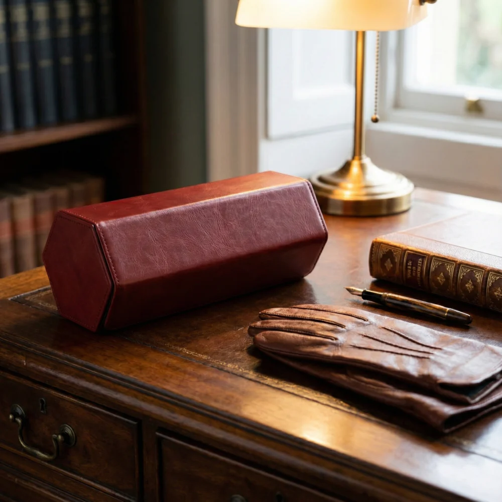 Hexagonal Premium Leather Watch Roll - 3 Slots