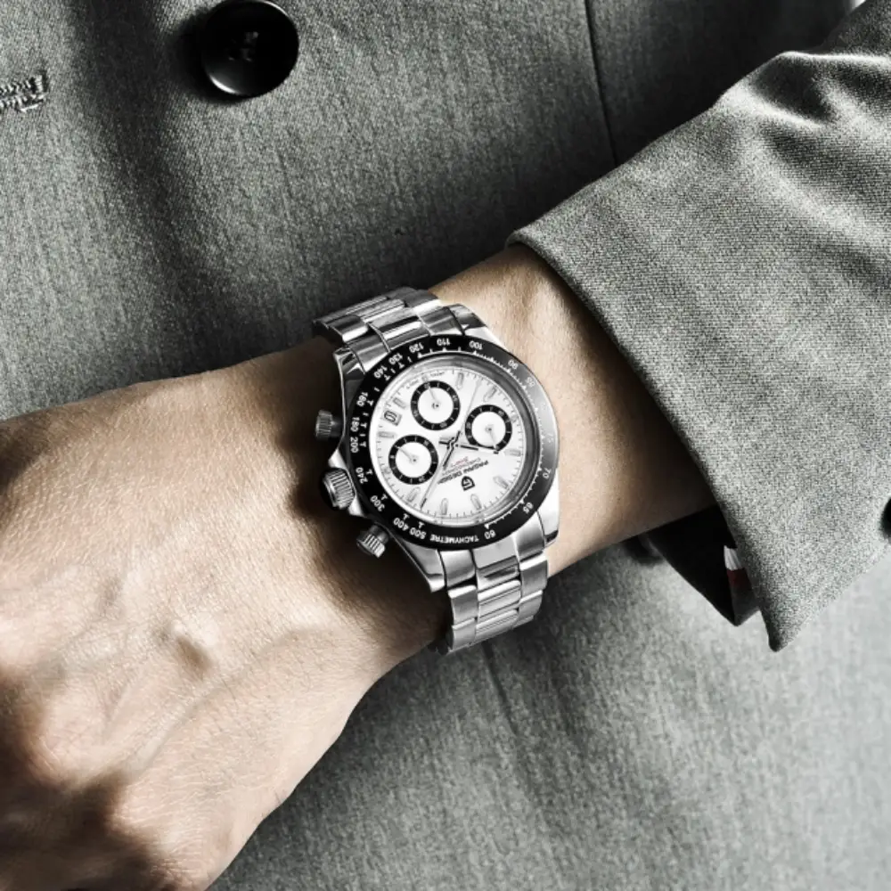 Material: Full stainless steel construction, Synthetic sapphire dial window, and top Japanese TMI VK63 quartz movement