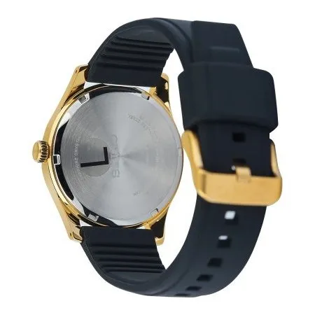 The SUR560P1 features a radiant gold-tone stainless steel case and black silicone strap that create a luxurious yet understated presence on the wrist. Its minimalistic black dial is beautifully accented with gold indices and hands, offering a clean and classy finish. The 40mm case provides a modern fit that suits both formal and business casual attire, while the flat Hardlex crystal adds durability without compromising on clarity.