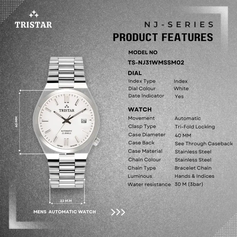 Tristar NJ31WMSSM02 Automatic White Dial Stainless Steel Men's Watch